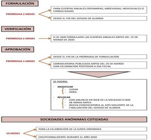 A continuación, se muestra un cuadro explicativo sobre la ampliación de plazos para la formulación, verificación y aprobación de las cuentas anuales correspondientes al ejercicio 2019.